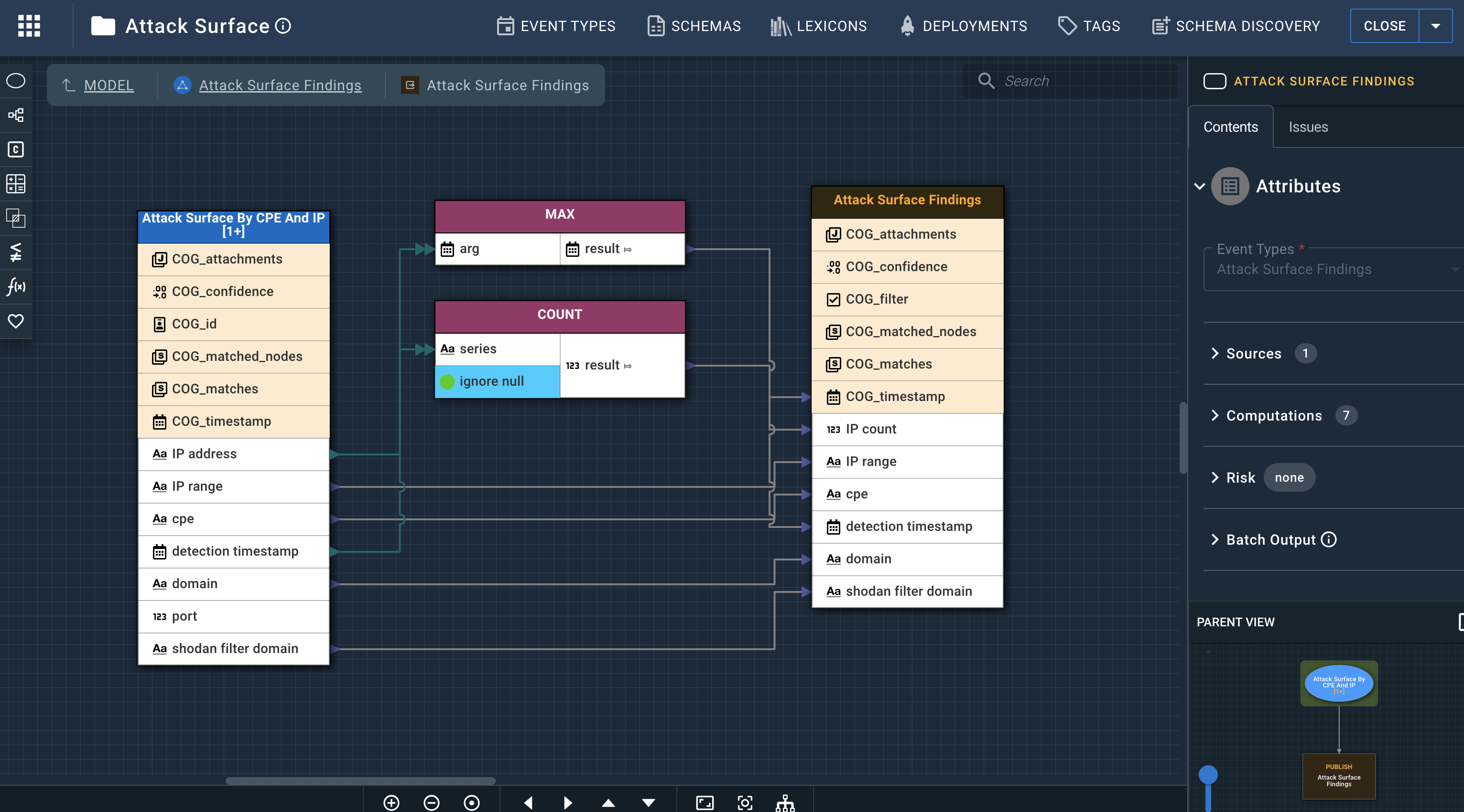 Create visual representations of event patterns without needing to code or program, then generate a model that can be deployed to a Cogynt.ai cluster.